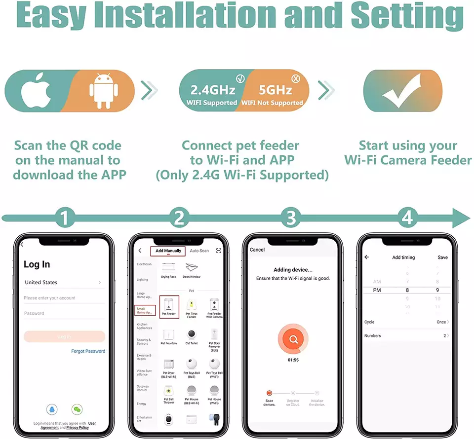 2.4G WiFi Enabled Smart Food Dispenser with Stainless Steel Double Food Bowls